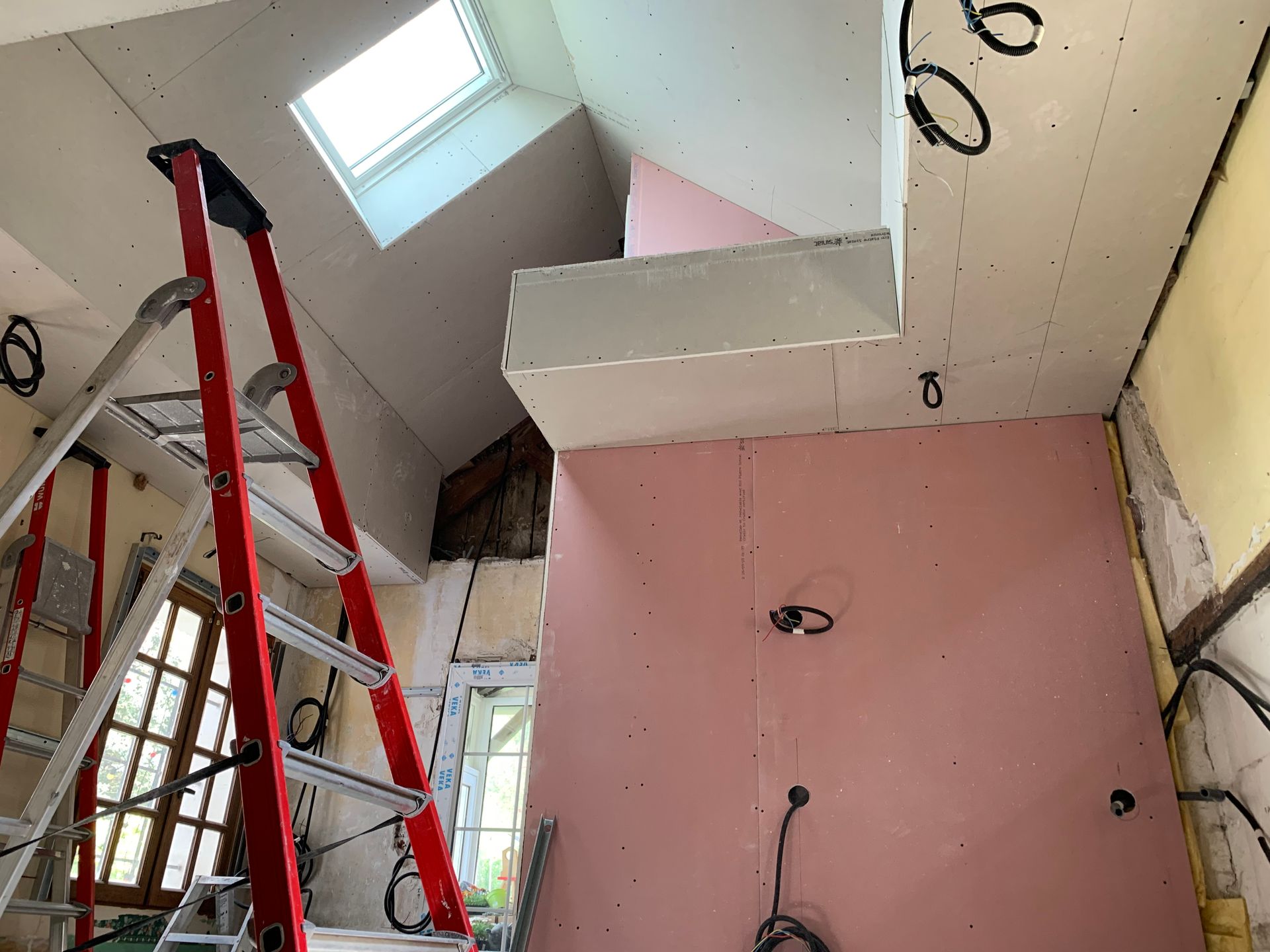Après avoir isolé vos murs et vos combles, F2 RENOV prend en charge la plâtrerie. Cela implique l'utilisation de plaques de plâtre pour assembler vos murs et vos plafonds, dans le but de concevoir des intérieurs à la fois élégants et pratiques.